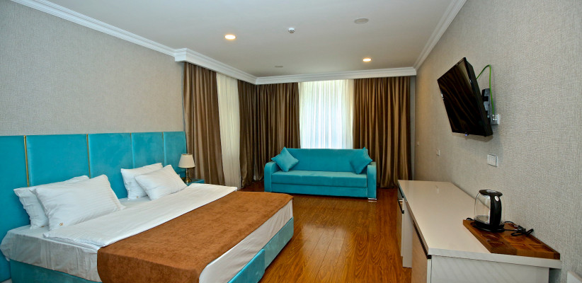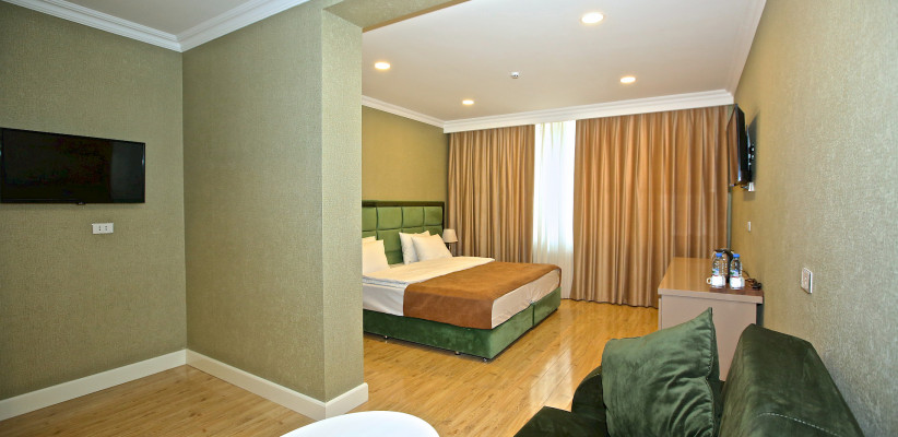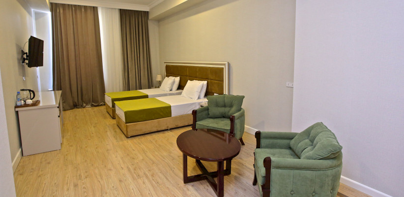 60 м2, вид на город, номера расположены на втором и третьем этажах отеля, 1 большая двуспальная кровать и 2 дивана-кроватиStandart Double Room/ стандарт двухместный