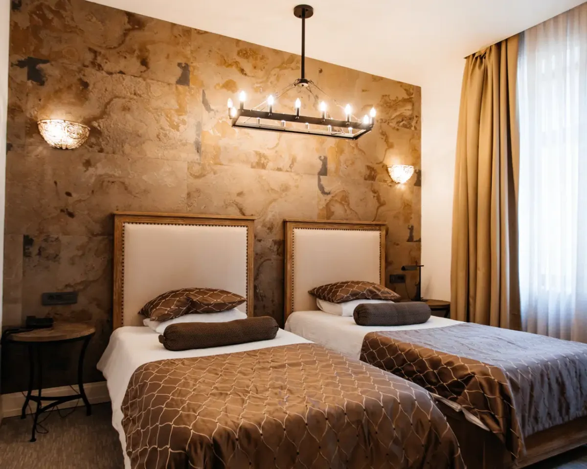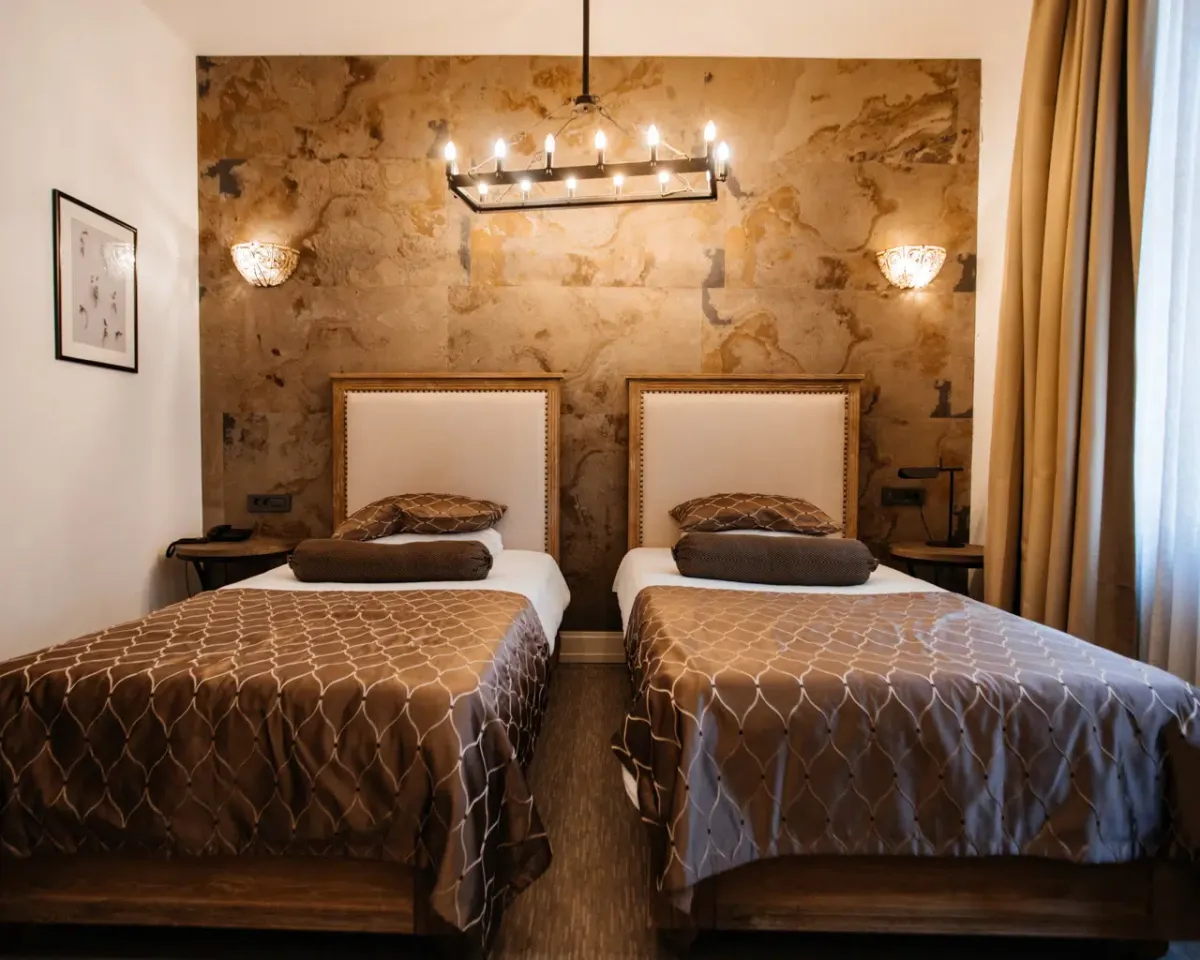 25 м2, двуспальная кровать размера «king-size», вид на город. Количество гостей: до 3Standart Twin Room/ Стандартный двухместный номер с 2 отдельными кроватями