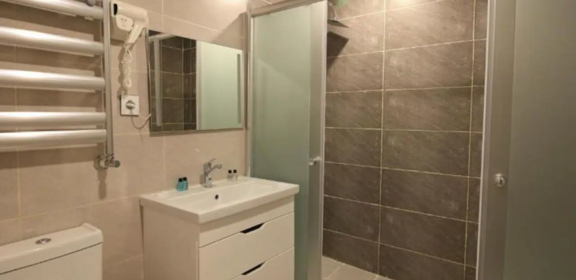 27 м2, вид во двор, три односпальные кровати. Максимальное количество гостей: 4