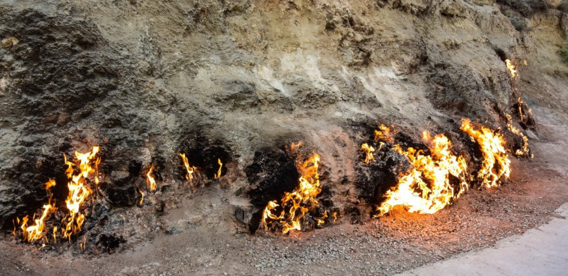 Программа включает поездку на гору Янардаг с наблюдением природного феномена – горящих языков пламени.