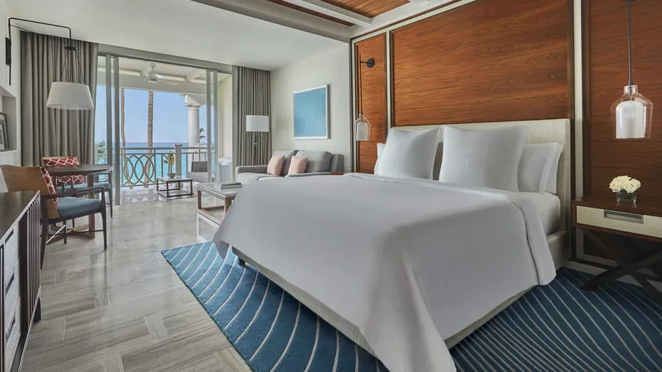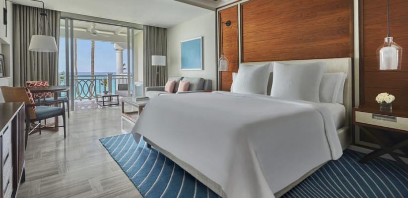 133 м2, 2 меблированных балкона или террасы с видом на океан, две спальни, просторная гостиная c обеденной зоной, две ванные комнаты, гостевой санузел. Максимальное размещение: 6 взрослых или 6 взрослых + 2 детейLuxury Oceanfront Room (Crescent Wing)