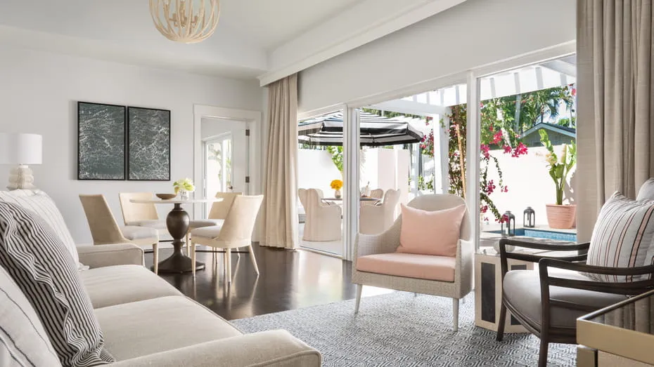 91 м2, меблированный балкон или терраса с видом на океан, двуспальная кровать или две односпальные кровати, просторная гостиная c обеденной зоной. Максимальное размещение: 3 взрослых или 2 взрослых + 2 детейOcean View Two-Bedroom Suite (Hartford Wing, центральное крыло отеля)