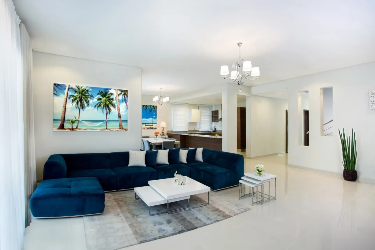 299 м2, двуспальная кровать размера king-size и две односпальные кровати, диван, гостиная, обеденная зона, кухня, рабочая зона, бассейн. Количество гостей: 10.Seville Villa