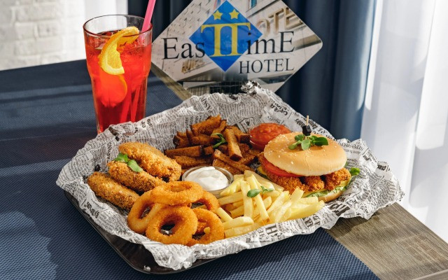 - ресторан East Time – на территории отеля, предлагает национальную и европейскую кухню, обеды, ужины и лёгкие блюда