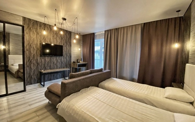- 4-местный стандартдо 6 гостей, двуспальная кровать или две односпальные кровати, два дивана, кондиционер, холодильник, ТВ, душевая, “завтрак в номер"