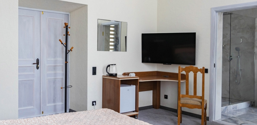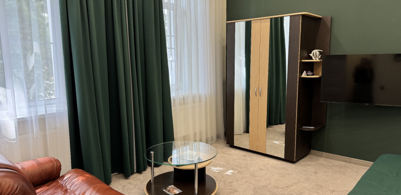 42 м2, с видом на улицу, 1 спальня с двуспальной кроватью, гостиная зона, количество гостей: 2 + 1Люкс