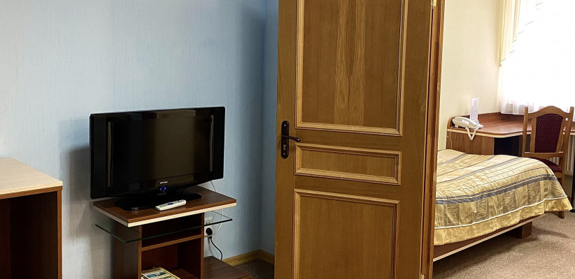 43 м2, два одноместных номера, объединённые общим холлом, односпальная кровать, количество гостей: 1Эконом-комфорт