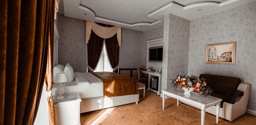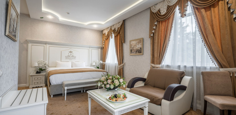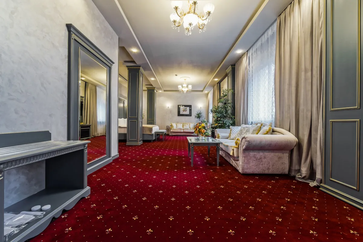 Отель Imperial Palace – это роскошный бутик-отель, расположенный в самом центре Минска. Отель сочетает в себе элементы исторической архитектуры и современный комфорт, предлагая своим гостям уникальную атмосферу уюта и элегантности. Интерьер выполнен в классическом стиле с использованием оттенков жемчуга и слоновой кости, а мебель и аксессуары из натурального дерева украшены росписью и позолотой. Каждый номер оснащён современными удобствами, включая кондиционер, телевизор, мини-бар и телефон. Кровати с ортопедическими матрасами и высококачественным бельём обеспечивают полноценный отдых после насыщенного дня.