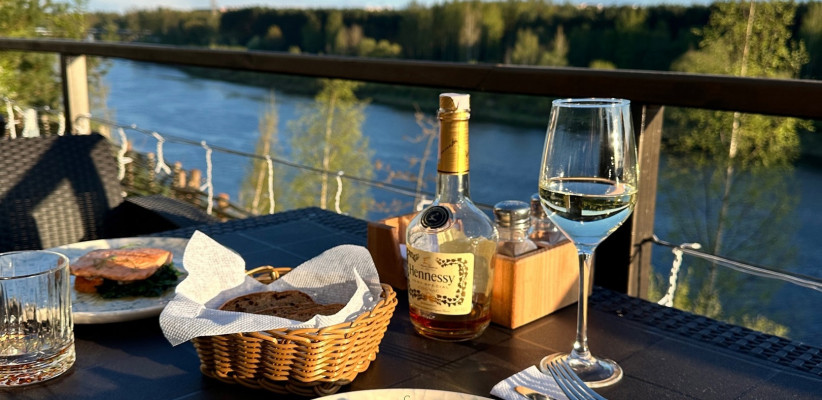 Ресторан комплекса расположен на двух уровнях с террасой и живописным видом на реку Западная Двина, предлагая гостям блюда белорусской и европейской кухни, а также комплексные завтраки и шведский стол