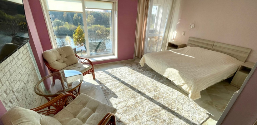 24 м2, двуспальная кровать, зона отдыха, балкон с видом на реку. Количество гостей: 2«Люкс» с видом на реку