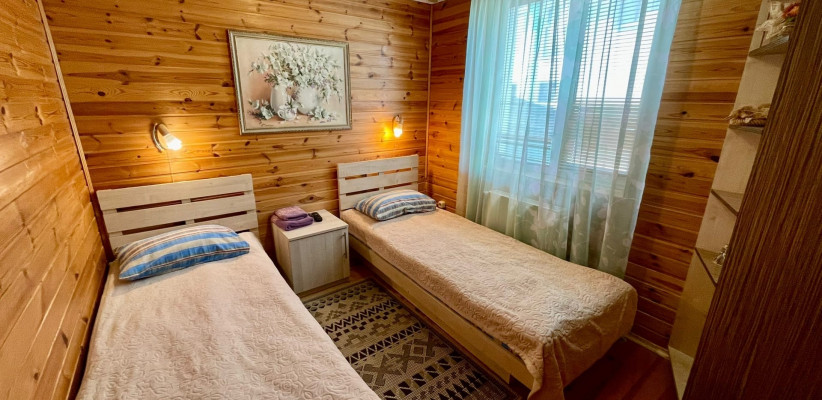 двуспальные, односпальные кровати, кухня, сауна с бассейном, бильярд, большая беседка, место для барбекю, подогрев полов, парковка. Количество гостей: 20