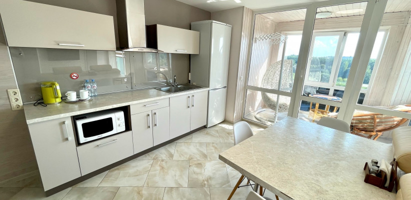 32 м2, двуспальная кровать, гостиная зона с раскладным диваном, балкон с видом на реку. Количество гостей: 4Апартаменты