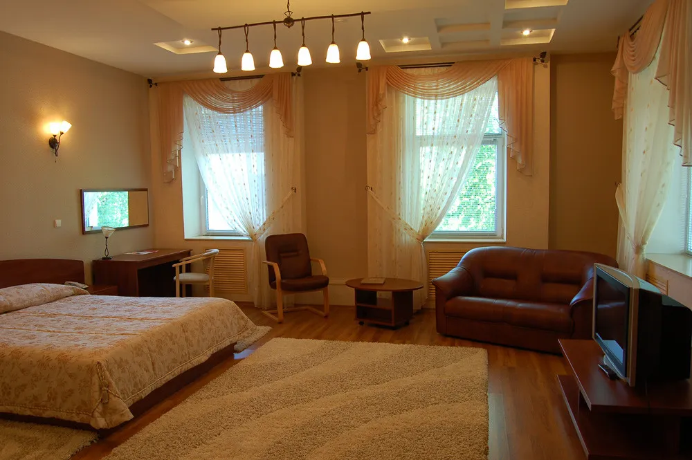 46,6 м2 (жилая 24,5 м2), двухкомнатный, двуспальная кровать, диван, кондиционер.Номер 205