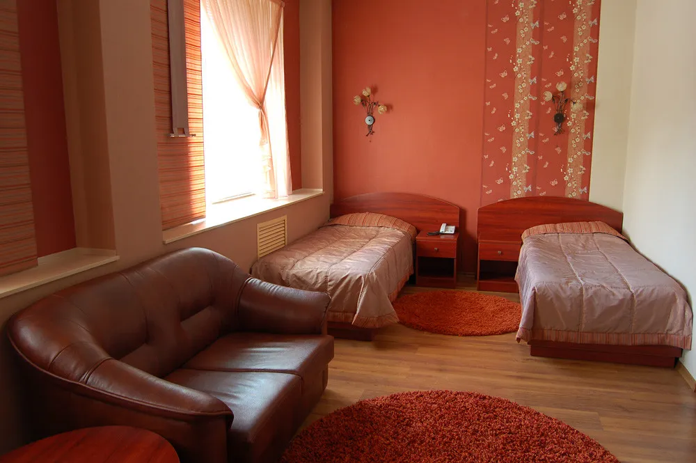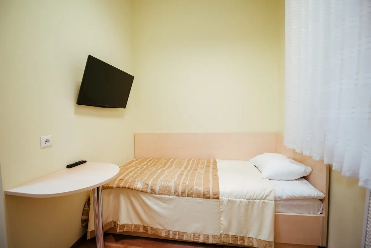 19,9 м2 (жилая 12,9 м2), однокомнатный двухместный, две односпальные кровати.Номер 204
