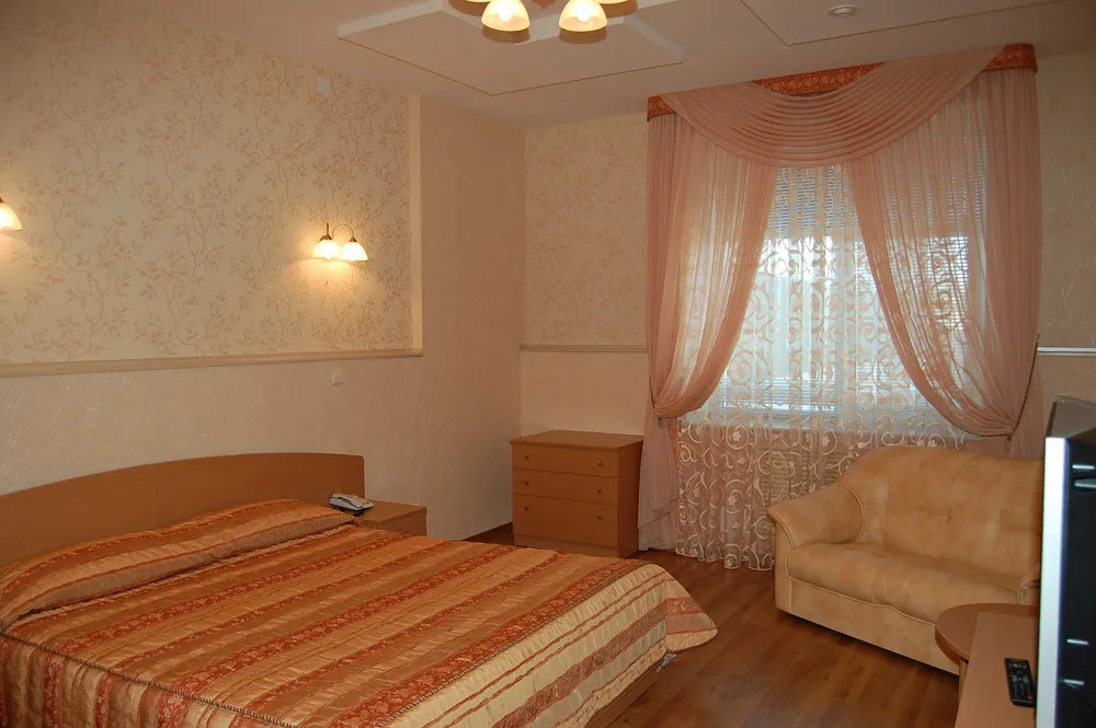 45,7 м2 (жилая 28,8 м2), двухкомнатный, двуспальная кровать, диван, кондиционер.Номер 302