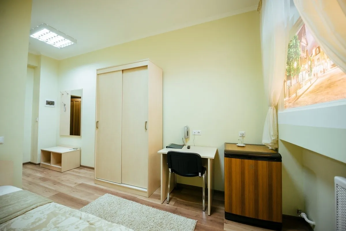 25,8 м2 (жилая 21,6 м2), однокомнатный двухместный, две односпальные кровати.Номер 203