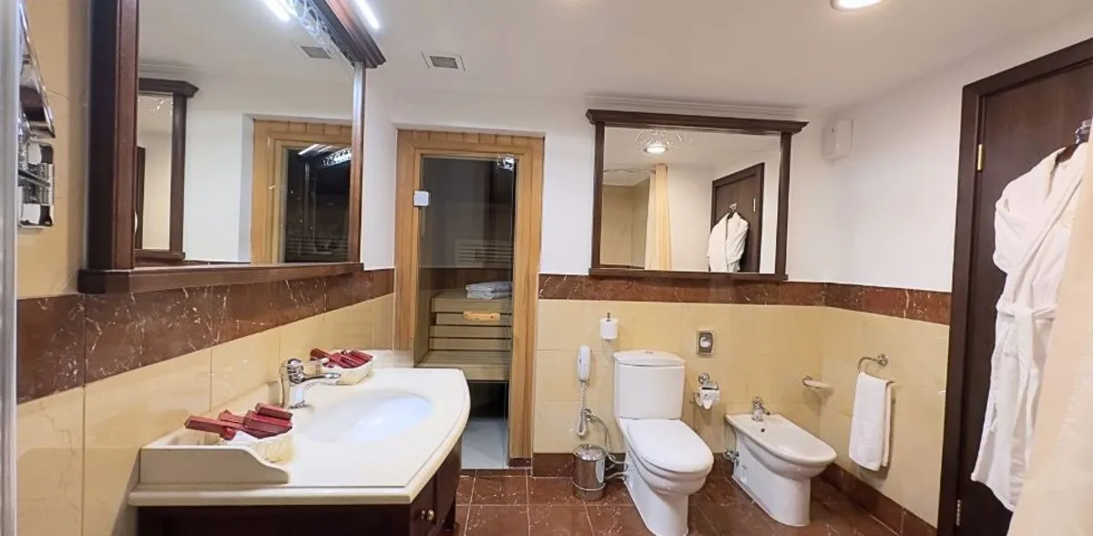 - Presidential Suite120 м2, две двуспальные кровати, диван, гостиная зона, обеденная зона, рабочая зона, джакузи. Количество гостей: 4.