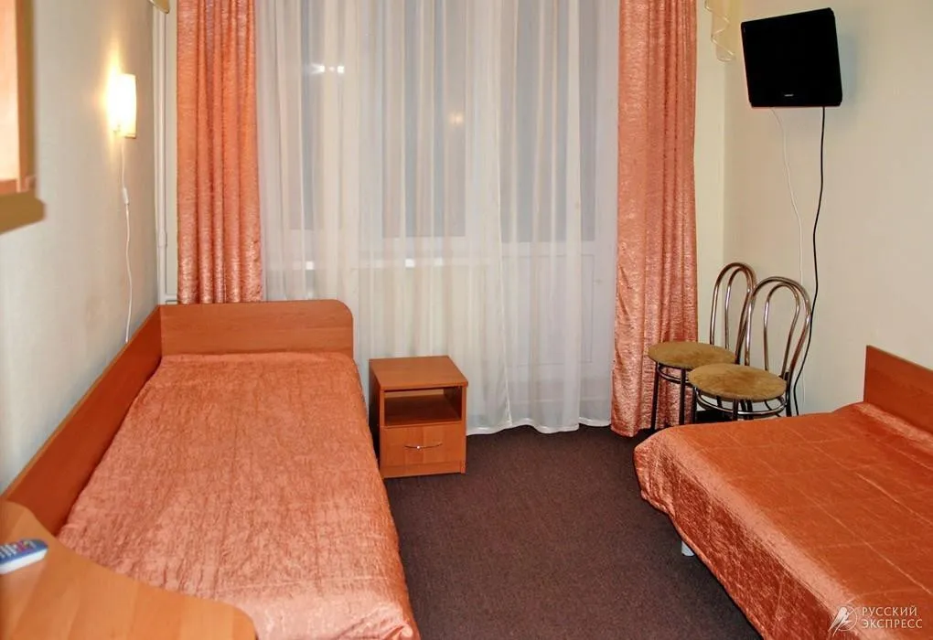 • 2-местный номер категории В (макс. 2 чел., телевизор, душ, умывальник, холодильник, балкон, тумбочки, шкаф, набор посуды, стулья, туалет, две 1-спальные кровати);