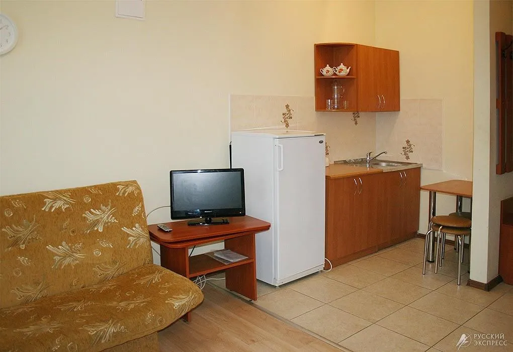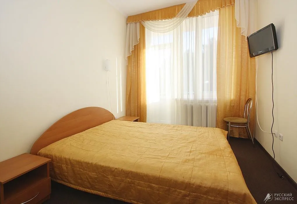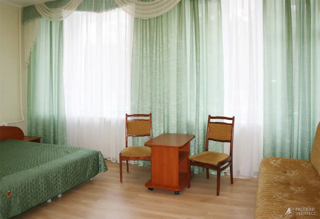 • 1-местный номер повышенной комфортности (макс. 1+2 чел., телевизор, ванна, умывальник, фен, холодильник, тумбочки, шкаф, стол, набор посуды, стулья, туалет, 2-спальная кровать). Доп. место - диван-кровать, может быть установлен без ограничения по возрасту.