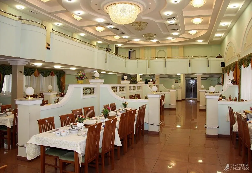 По своему составу минеральная вода санатория  близка к минеральным источникам знаменитого курорта «Пятигорский». Главный корпус 5-ти этажей (лифт есть), 4-х этажный корпус «люкс», лечебный, административный корпуса. Все корпуса соединены переходами. Столовая расположена в главном корпусе на 1 этаже.