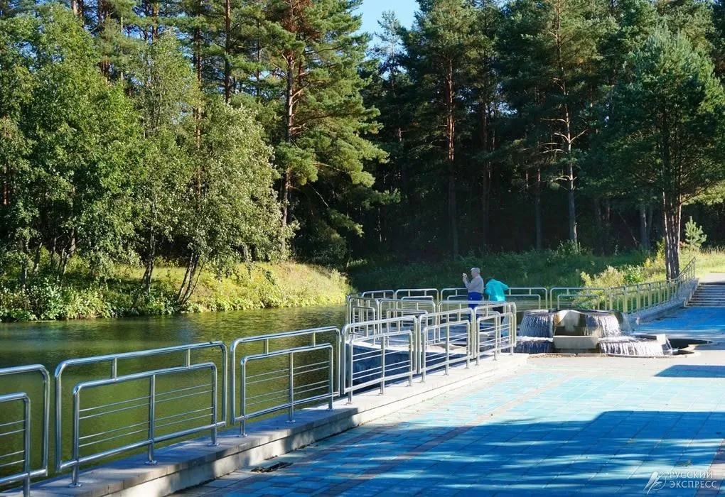 За пределами санатория на берегу реки Рыбчанка создано гидротехническое сооружение с каскадами, фонтанами и водопадами, декоративным каналом. Вокруг декоративного канала разбит гидропарк, состоящий из семи островков, соединенных подвесными мостиками. На одном из островков расположен общий пляж, оборудованный раздевалками (лежаков и зонтиков нет) Услуги на пляже: прокат катамаранов.