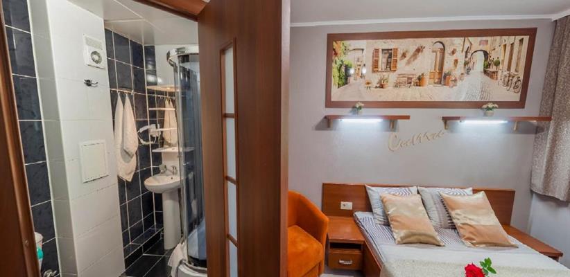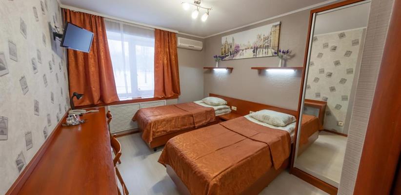 1 спальня, двуспальная кровать или две односпальные кровати, рабочая зона с письменным столом, шкаф, санузел с душем, количество гостей: до 2