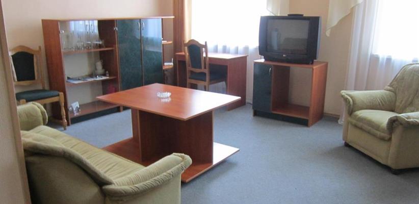 33 м2, две комнаты – спальня с двуспальной кроватью и гостиная зона, ванна и душ, количество гостей: 2 + 1Полулюкс