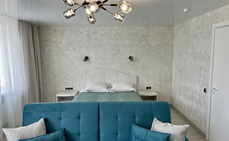 29,9 м2, однокомнатный номер высшей категории. В номере: телефон, кабельное телевидение, фен, халат и тапочки, электрочайник, холодильник, микроволновка, посуда, сейф, Wi-Fi. Возможна установка дополнительного места (платно).Люкс