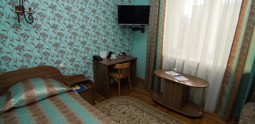 Одноместный номер: площадь 20 кв. м, односпальная кровать, диван, рабочее место.