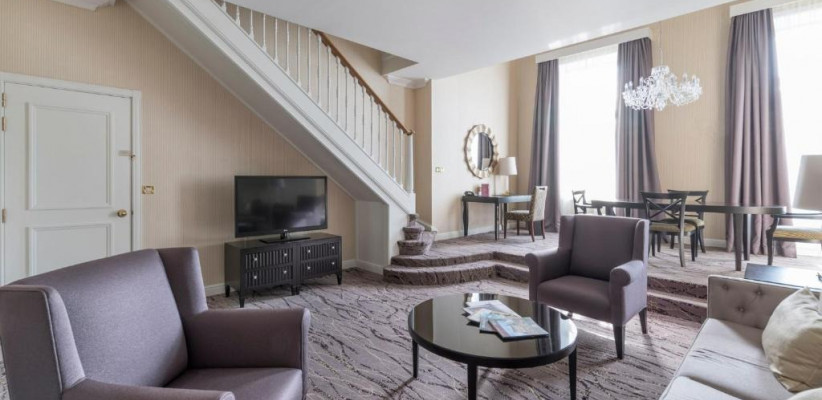 130-140 м2, виды на город и улицу, 1 спальня, двуспальная кровать, гостиная, столовая, мини-кухня, количество гостей: до 8Royal Suite