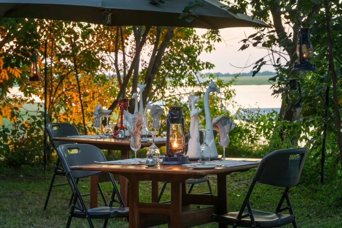 Лодж Chobe Game, окруженный вековыми деревьями, построен с уважением к местному стилю и располагает всеми необходимыми удобствами. Элегантность здесь выражена не только через интерьеры, но и через подход к туризму, включая внедрение солнечных лодок и электрических сафари-машин для бесшумных туров, что подчеркивает ответственное отношение к окружающей среде и устойчивому развитию туризма.