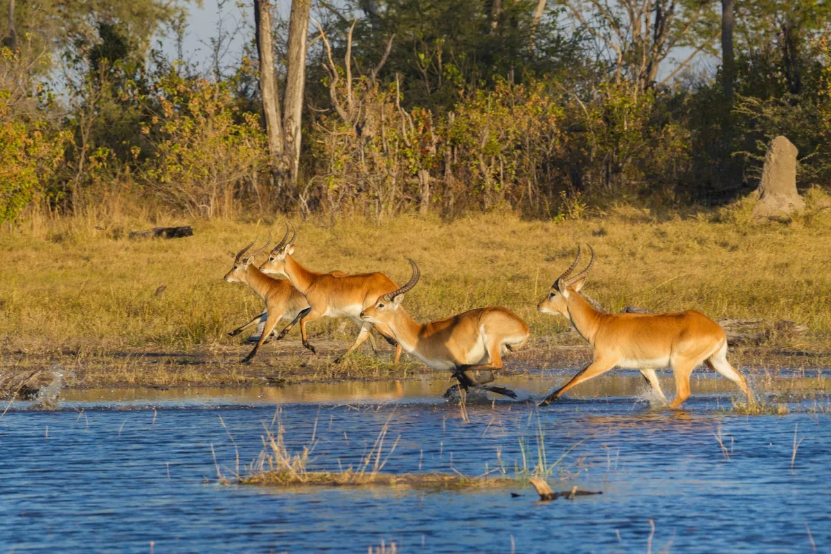 В отличие от сафари на джипах, водные сафари позволяют бесшумно проникать вглубь тростниковых зарослей и лагун. Уровень воды меняется в зависимости от сезона (паводки обычно достигают пика с июня по август), открывая доступ к удаленным уголкам.