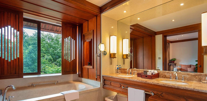 Гостям доступны спа‑центр, тренажёрный зал с оборудованием Technogym и три ресторана с азиатской, тайской и итальянской кухней. Здесь можно насладиться традиционными чайными церемониями, расслабиться у панорамного бассейна или заняться фитнесом в окружении тропической природы.