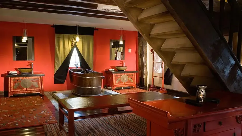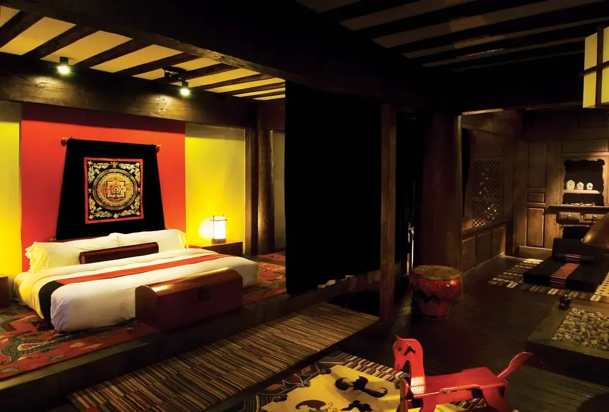 Курортный отель Banyan Tree Ringha в Шангри‑Ла – это погружение в тибетскую культуру: 32 люксовых коттеджа и виллы, перестроенные из старинных фермерских домов с традиционной резьбой по дереву и земляными каминами. Гостей ждут уютные номера в тибетском стиле с деревянными ваннами на дровах, собственными террасами и видами на долину Рингха.