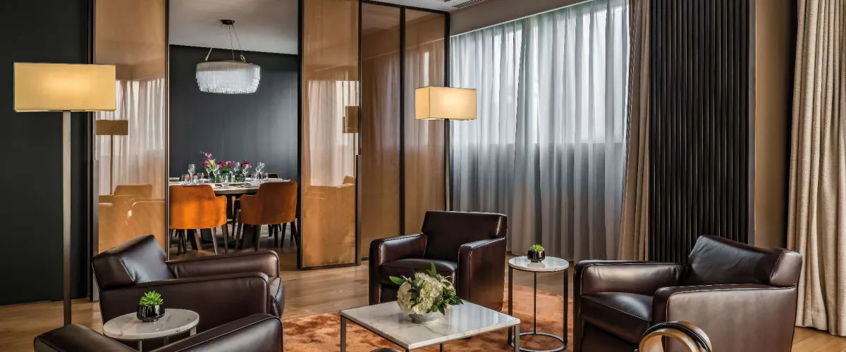 83-102 м2, двуспальная кровать размера «king-size», отдельная гостиная, гардеробная, окна от пола до потолка с видом на город. Количество гостей: 3Deluxe Suite