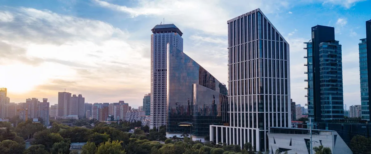 На территории комплекса находятся офисные башни, бутики, художественные пространства и ресторан высокой кухни Xin Rong Ji, отмеченный тремя звездами Мишлен. Поблизости расположены культурные и модные районы Саньлитунь и арт-квартал 798. До исторических достопримечательностей Пекина, включая Запретный город и Храм Ламы, легко добраться на лимузине отеля.