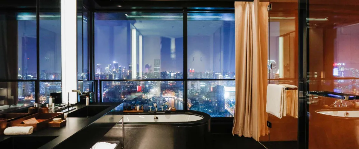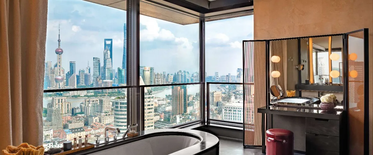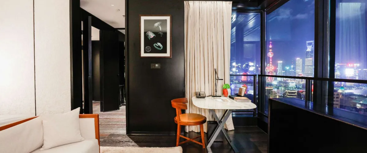 - Расположение на берегу Suzhou Creek рядом с набережной Вайтань открывает впечатляющие панорамные виды на исторический Шанхай и футуристический Пудун.