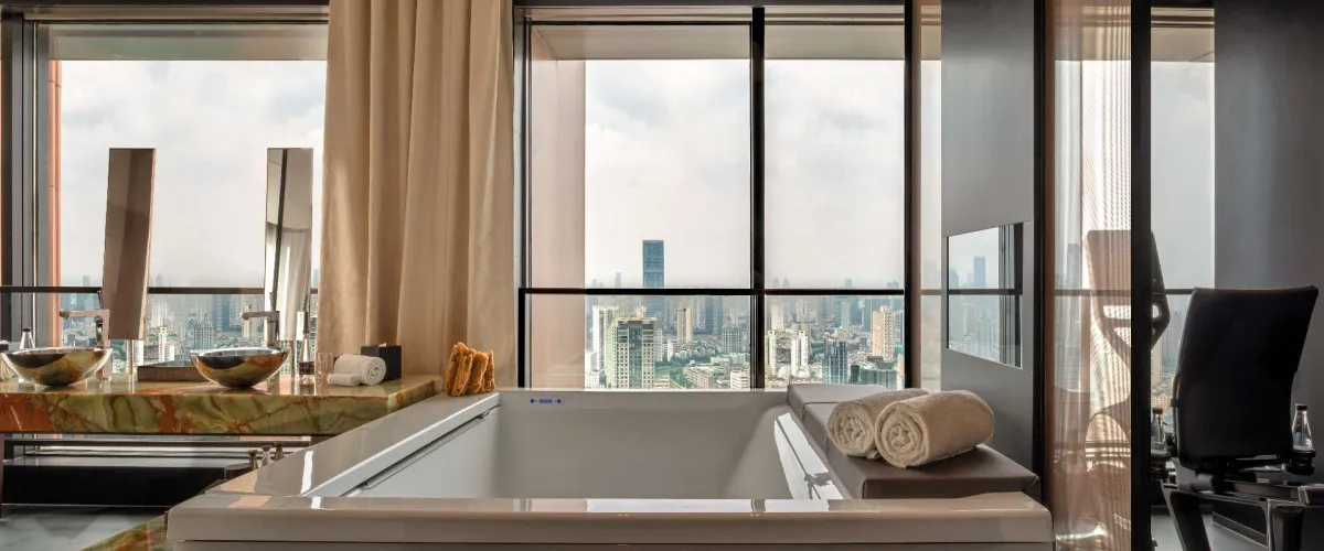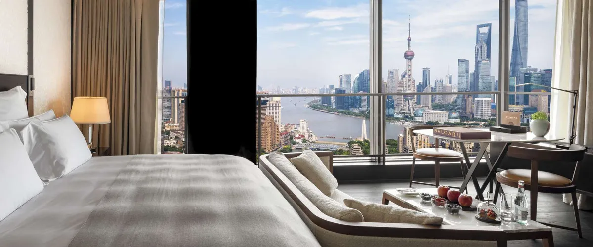 Bvlgari Hotel Shanghai расположен на берегу залива Сучжоу, рядом с набережной Вайтань и деловым центром города. Комплекс занимает верхние этажи 48-этажной башни проекта SUHE CREEK и открывает виды на исторический Шанхай и футуристический Пудун.