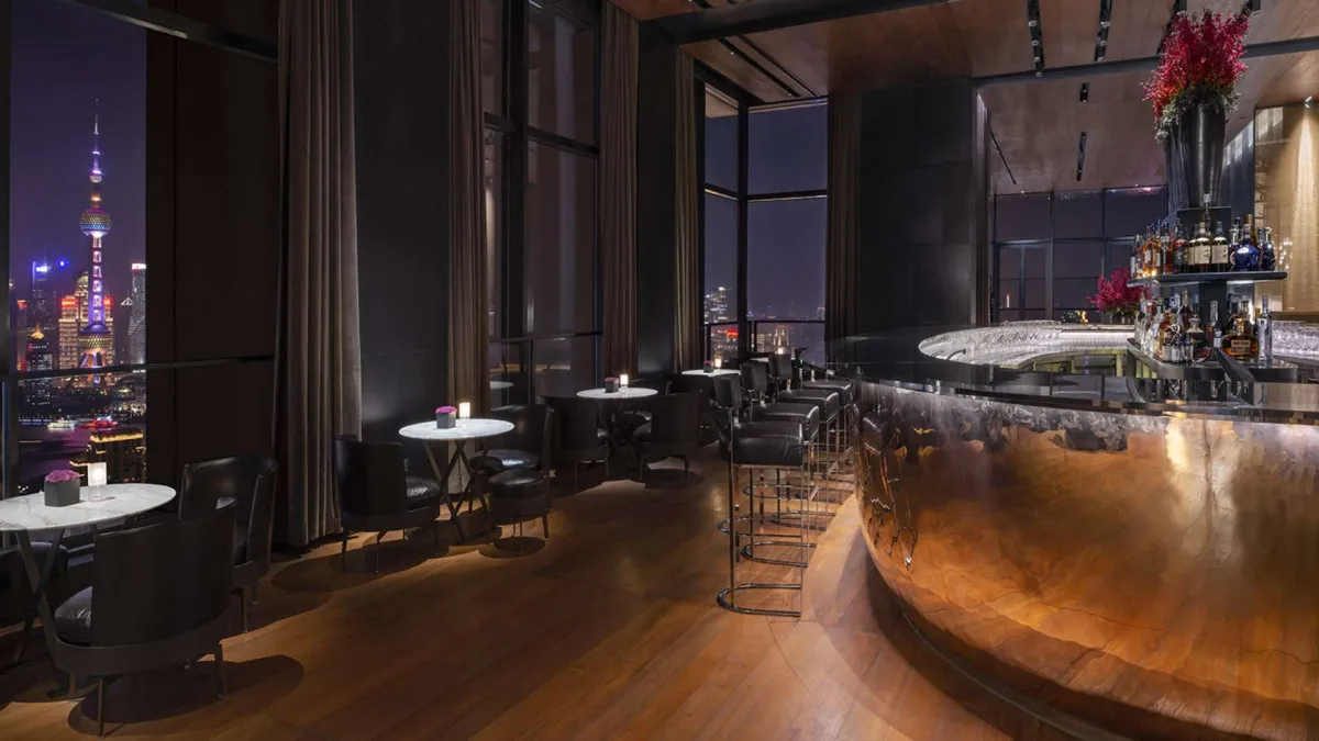 - The Bvlgari Bar – культовый бар на 47-м этаже с панорамным видом на Вайтань и Пудун, центральной овальной стойкой-символом коллекции Bvlgari и эксклюзивной террасой, созданный как драгоценный арт-объект для изысканного отдыха