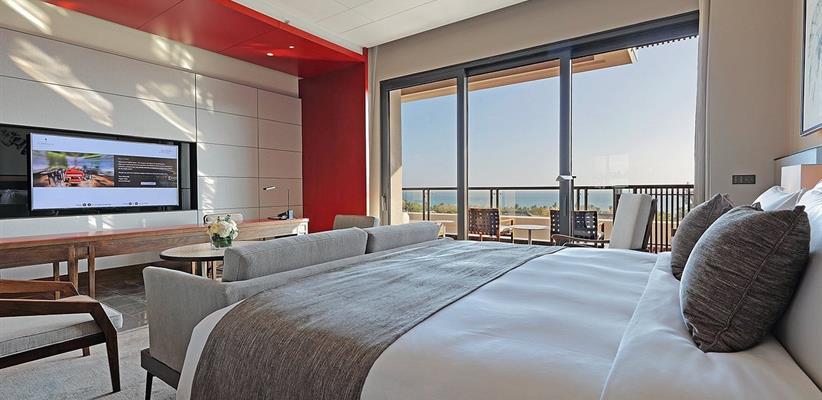 88 м2 с балконом и видом на море. Кровати king-size или queen-size. Максимальное количество гостей: 2 взрослых и 1 ребенок.Grand Ocean Suite – 6 номеров