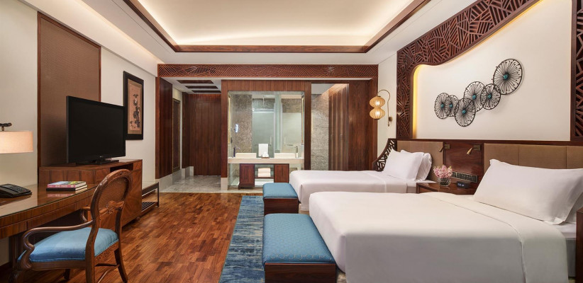 В отеле 273 элегантных номера и люкса, дизайн которых отражает природную красоту Хайнаня. В интерьере гармонично сочетаются старинная и современная мебель из ценных пород древесины, а также натуральный камень, характерный для этого региона, создавая атмосферу утонченной элегантности и единения с окружающей средой.