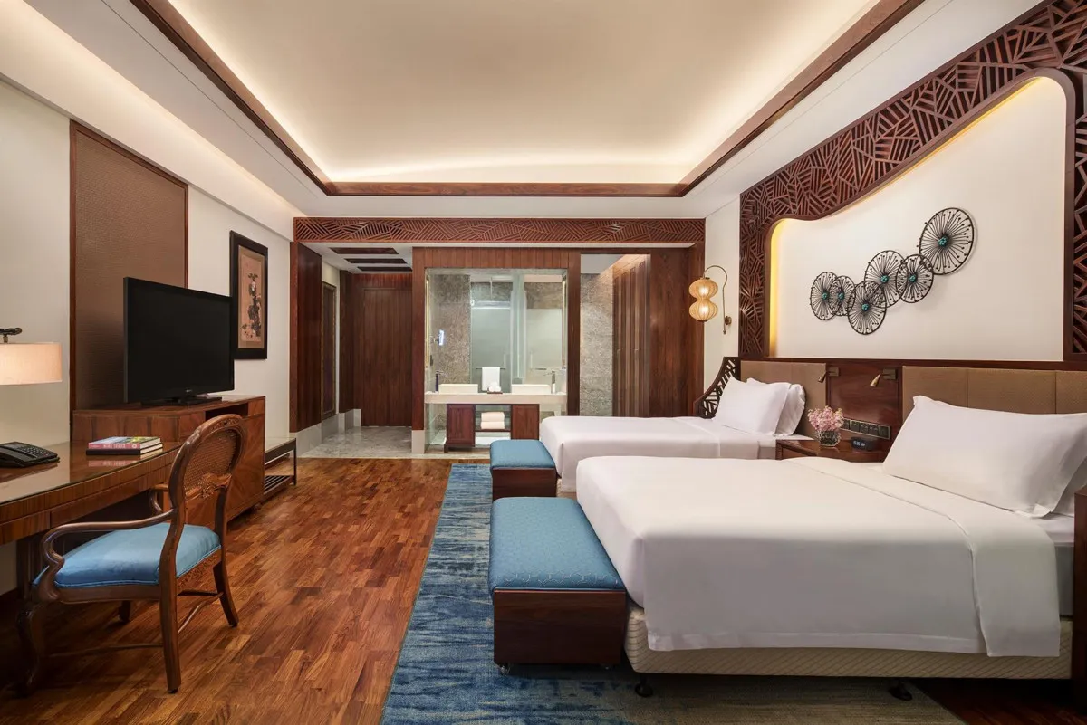 Fairmont Sanya Haitang Bay впечатляет своей архитектурной концепцией, где современная роскошь переплетается с традиционными китайскими мотивами. Интерьеры номеров украшены редкими породами дерева и натуральным камнем, добытым в местных регионах.