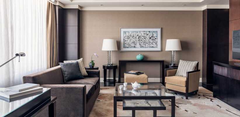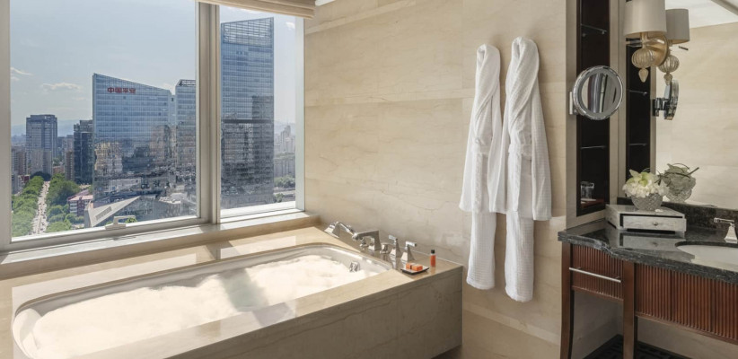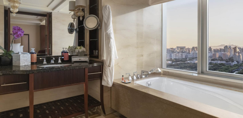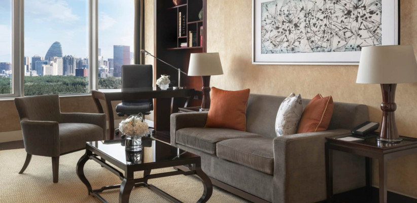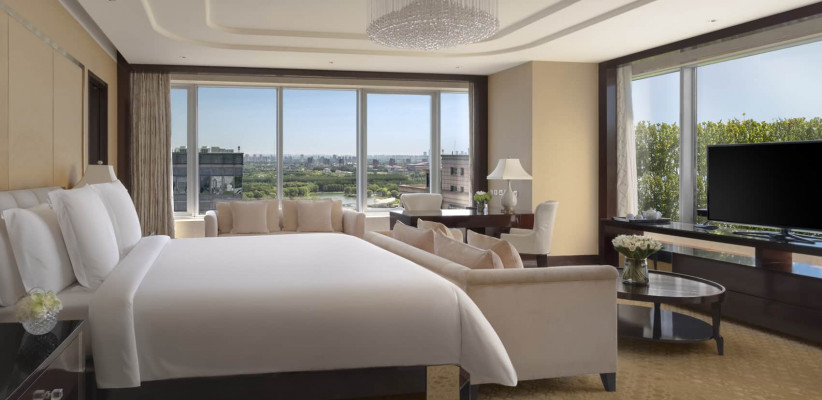 114 м2, двуспальная кровать размера «king-size», рабочая зона, отдельная гостиная, обеденная зона, особое обслуживание, доступ в представительский клубный лаунж, вид на город или парк Чаоян. Количество гостей: 3Beijing Suite