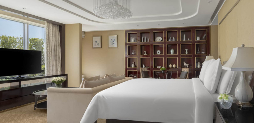 Номера и люксы оформлены в современном стиле с элементами китайской культуры: резными панелями, керамикой и каллиграфией. Из окон открываются виды на город и реку Лянма. Просторные интерьеры сочетают комфорт и функциональность, подходя для деловых поездок и отдыха.