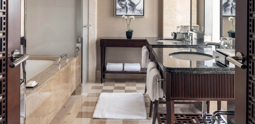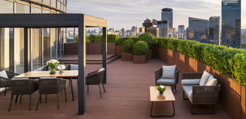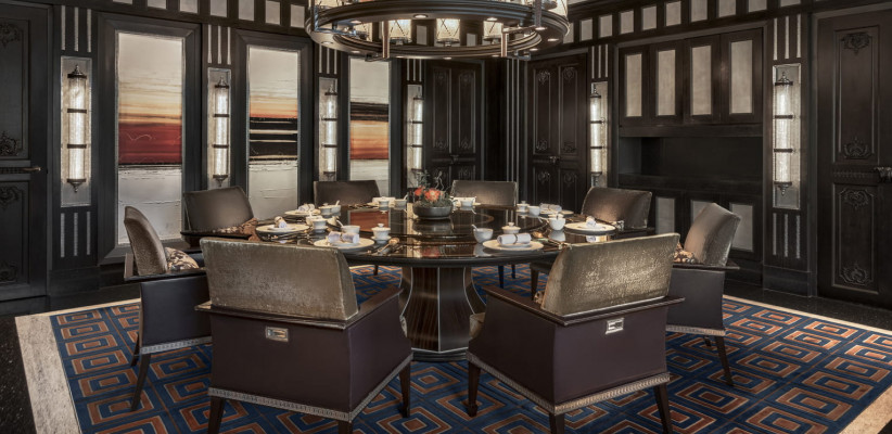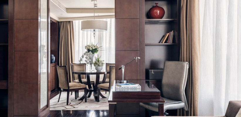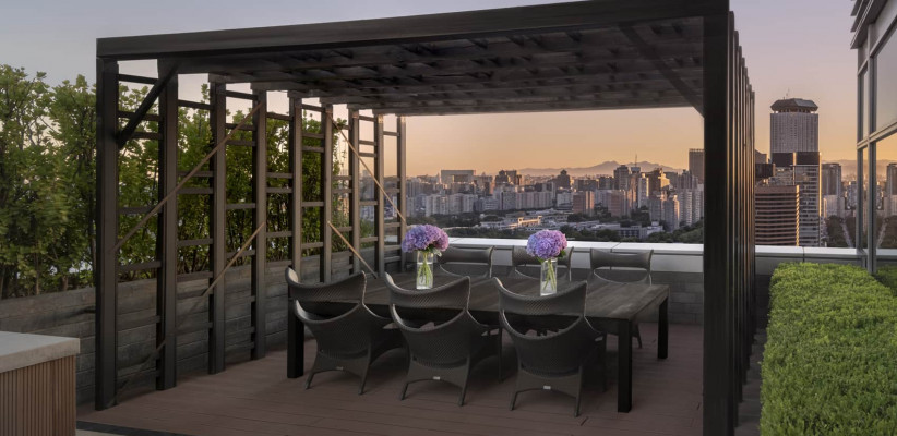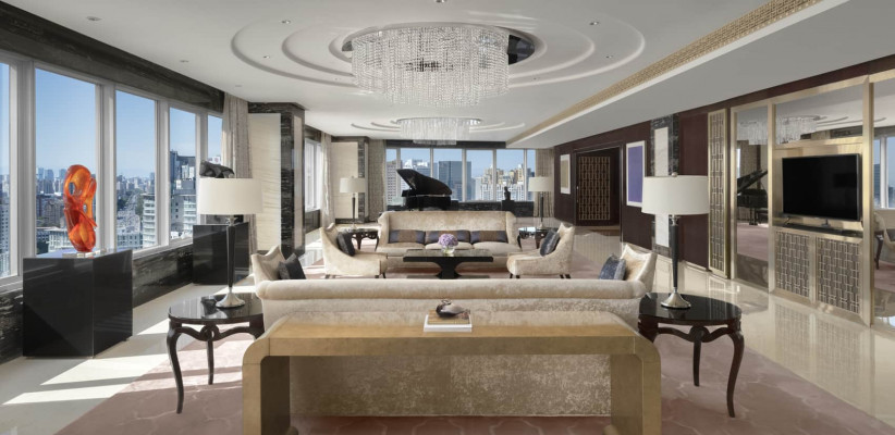 730 м2, три двуспальные кровати размера «king-size», рабочая зона, отдельная гостиная, три ванные комнаты, медиа-комната, частный кабинет, рояль, открытая кухня, частный доступ к лифту, уникальное обслуживание, терраса на крыше с панорамным видом на Пекин. Количество гостей: 9Chairman Suite
