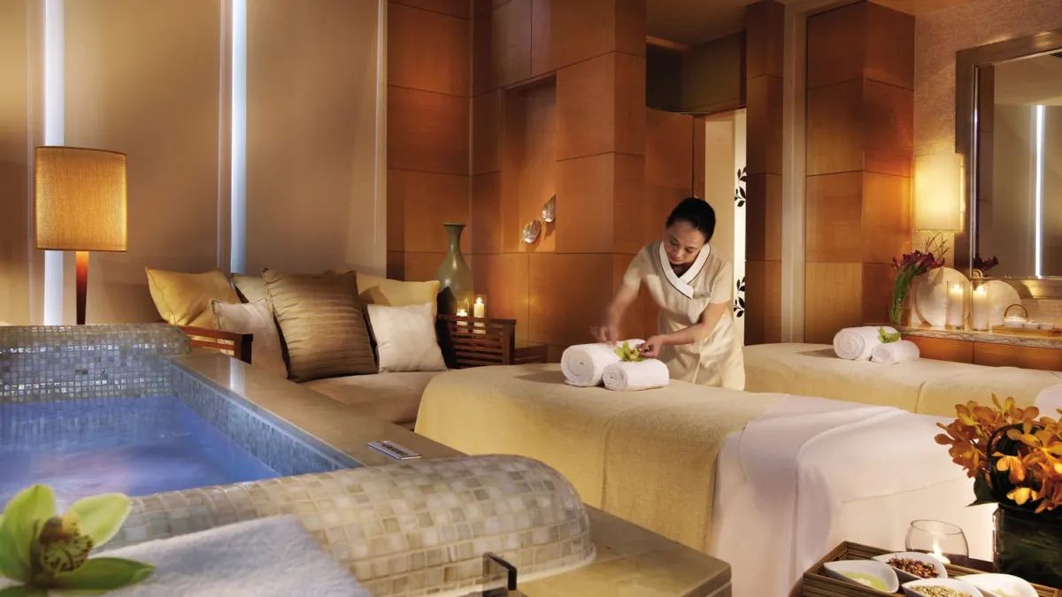 288–382 м2, с видами на Cotai Strip, две спальни (king + queen или другие конфигурации), гостиная зона, возможно private steam/сауна, количество гостей: до 6
