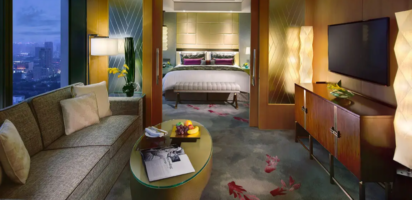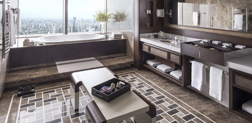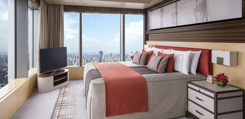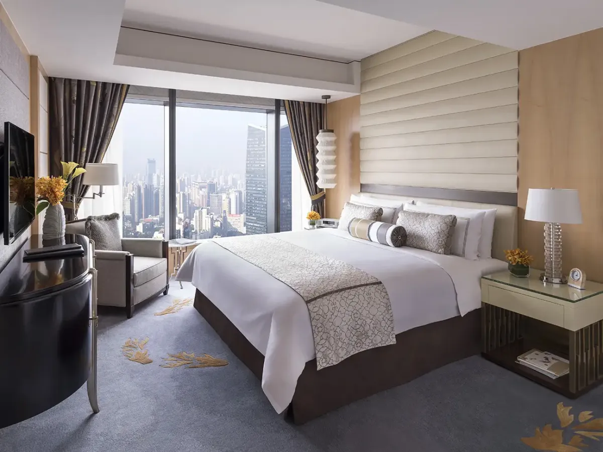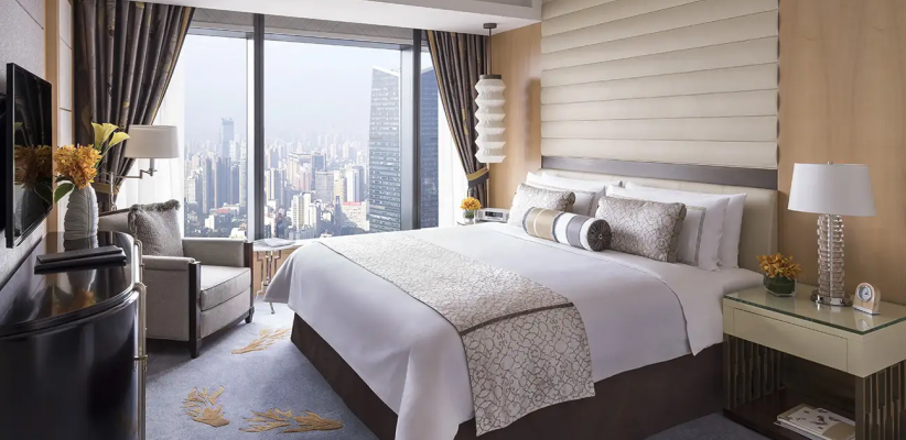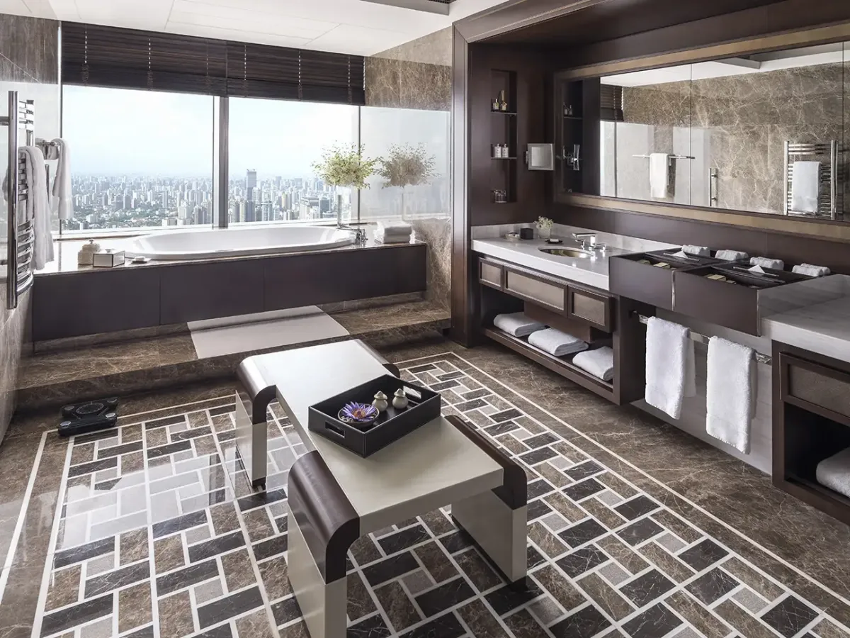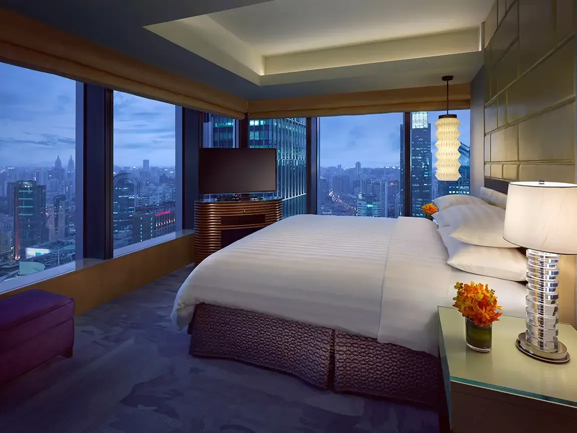 Расположенные на 30–59 этажах торгового центра Jing An Kerry Centre, 508 номеров и люксов предлагают потрясающий вид на горизонт и подогреваемые мраморные полы во всех ванных комнатахDeluxe Room