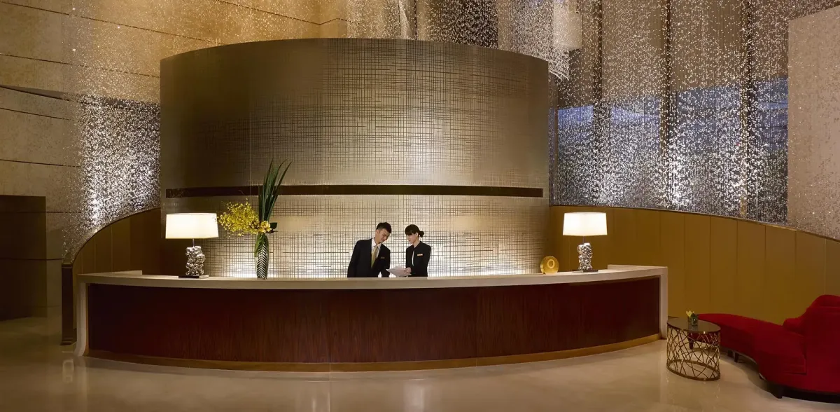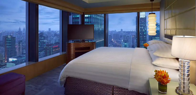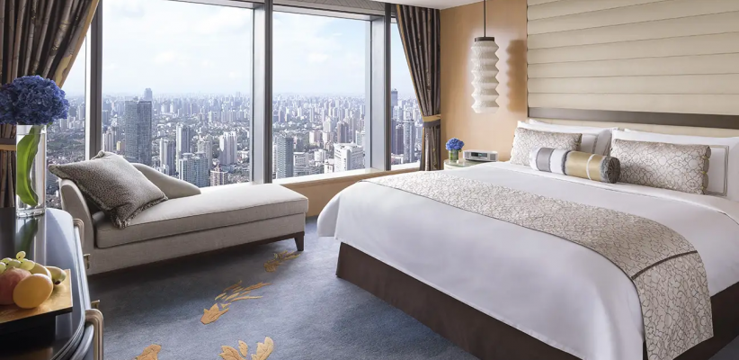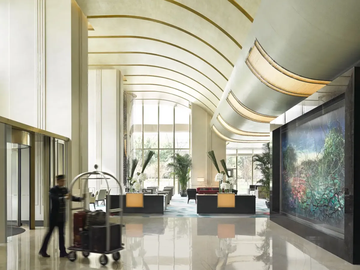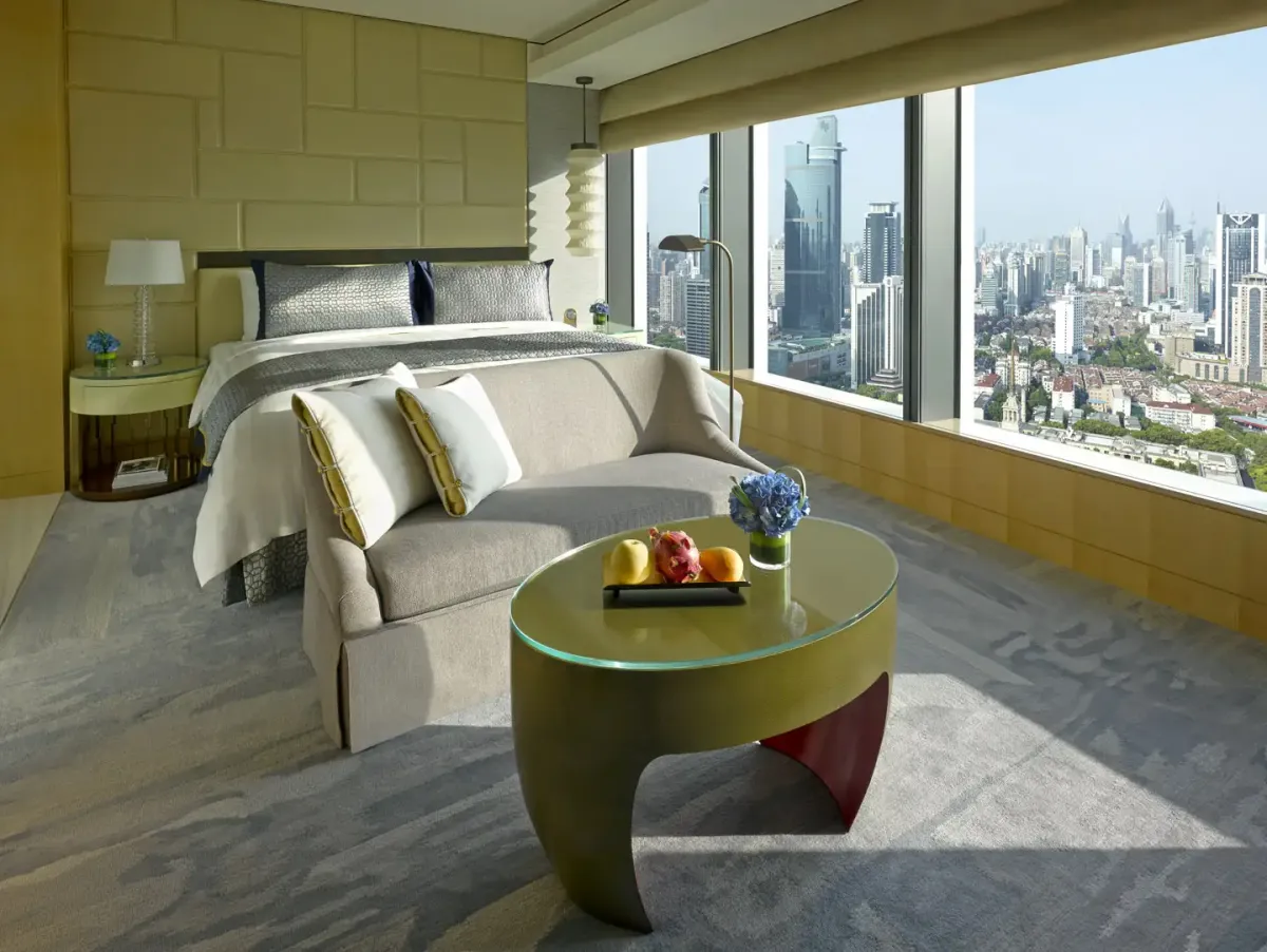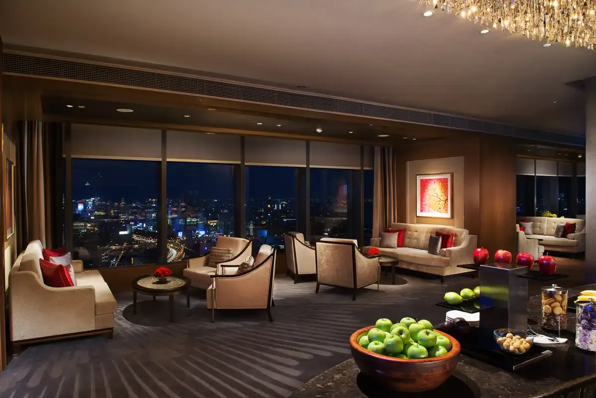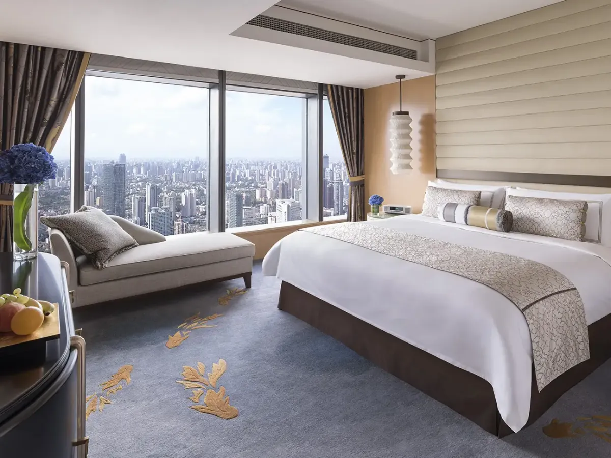 Просторные event-пространства включают большой бальный зал с высокой потолочной архитектурой, зал для торжеств и конференц-залы, подходящие для значимых мероприятий. Доступность аэропорта Хунцяо за 20 минут и международного аэропорта Пудун примерно за 45 минут подчеркивает удобство расположения.