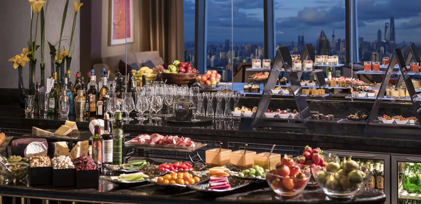 Horizon Club Lounge на 55-м этаже предлагает эффектный вид на город, создавая пространство для отдыха в окружении небесной линии Шанхая. Шесть ресторанов и баров, включая отмеченные Michelin, раскрывают современную интерпретацию кантонской и средиземноморской кухни.