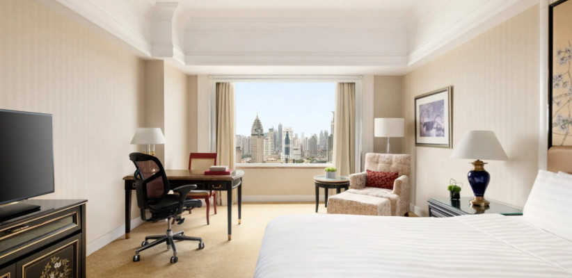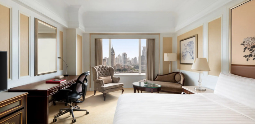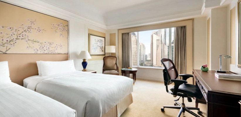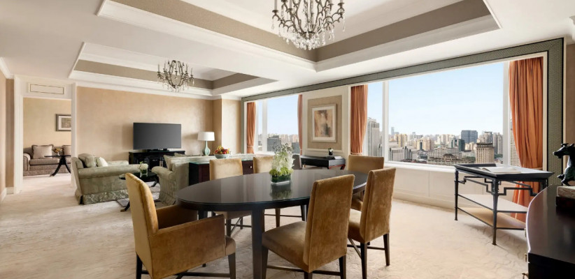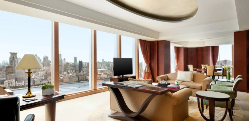 50‑54 м2, с видом на Pudong city, спальня с двуспальной кроватью размера king‑size или с двумя односпальными кроватями, рабочая зона. Максимальное количество гостей: 2.Diplomat Suite